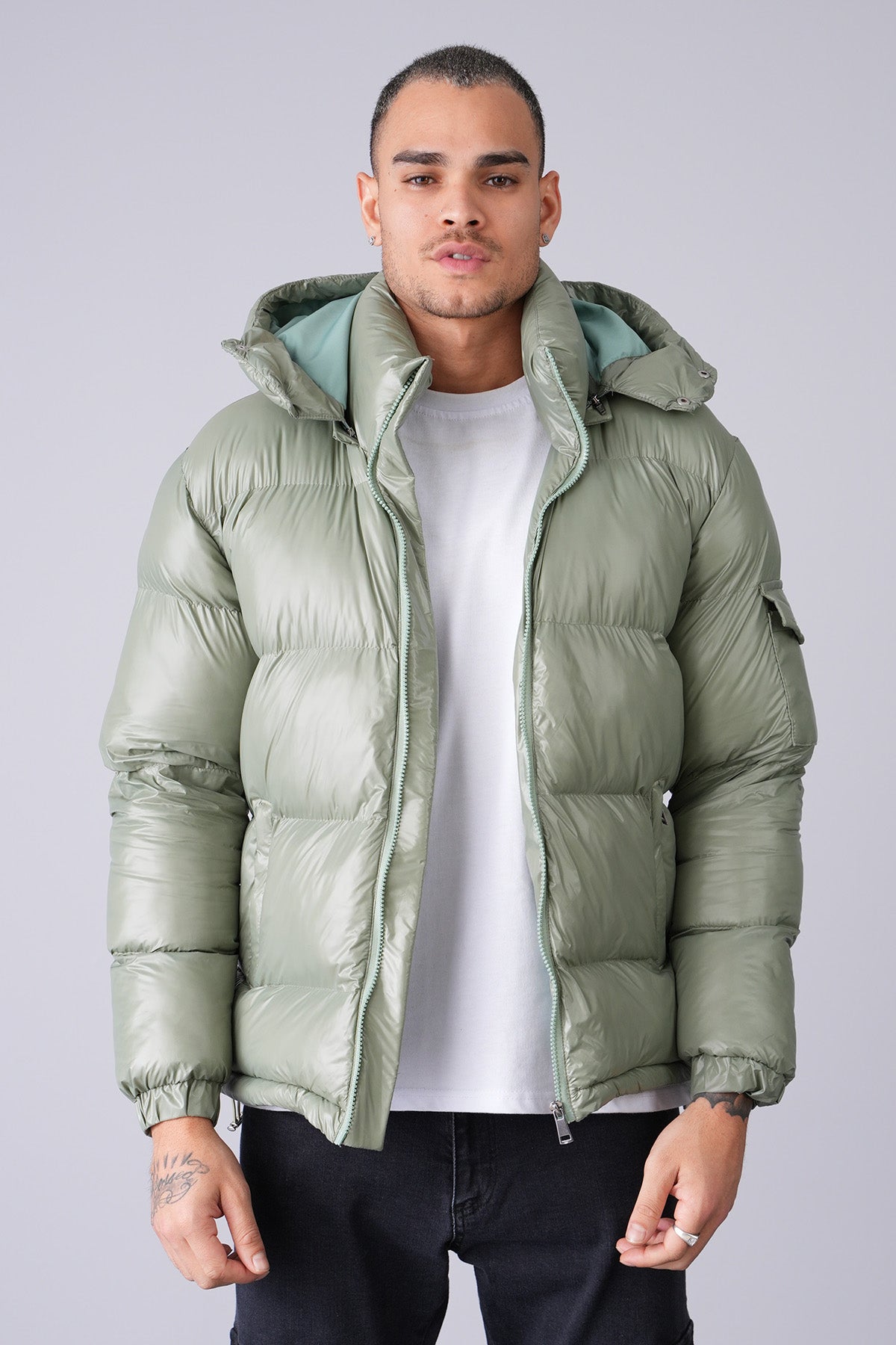 - Plain hooded down jacket