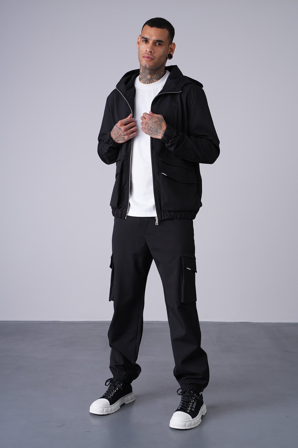 - Pants with front and side pockets
