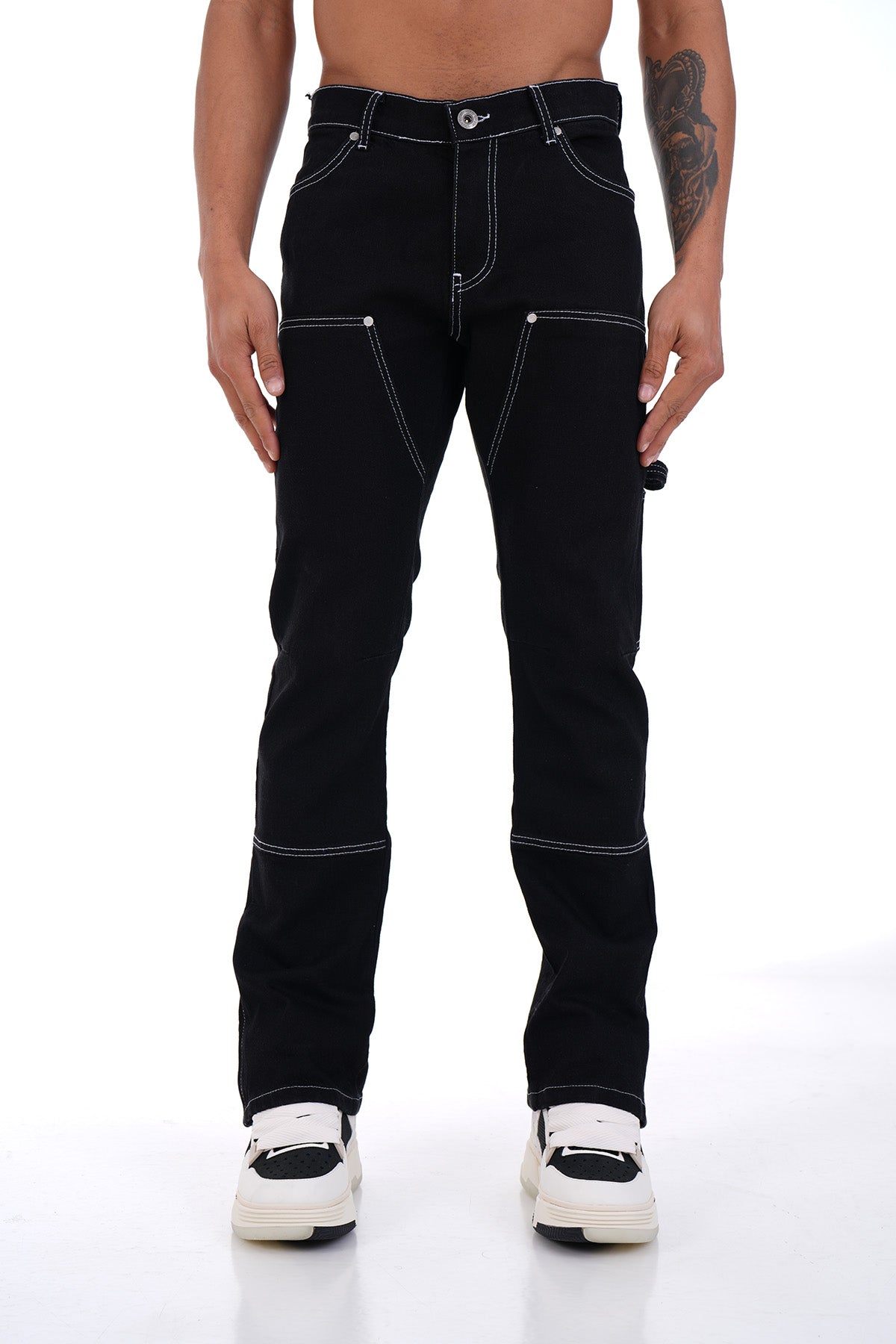 - Topstitched jeans