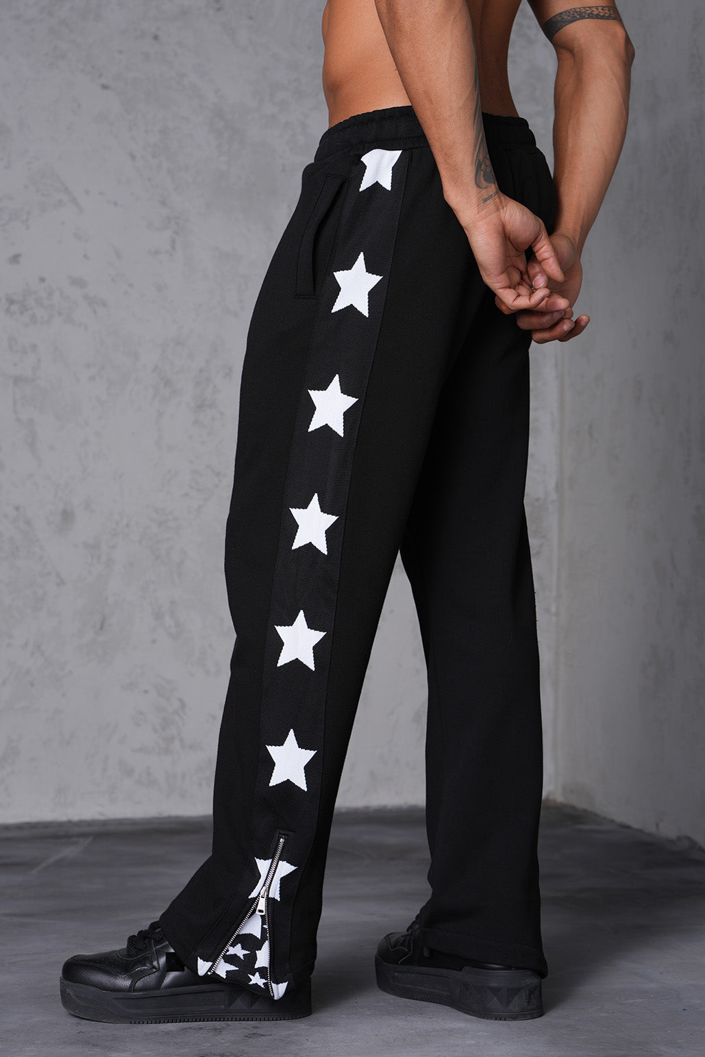 - Jogging pants with star-patterned side stripes