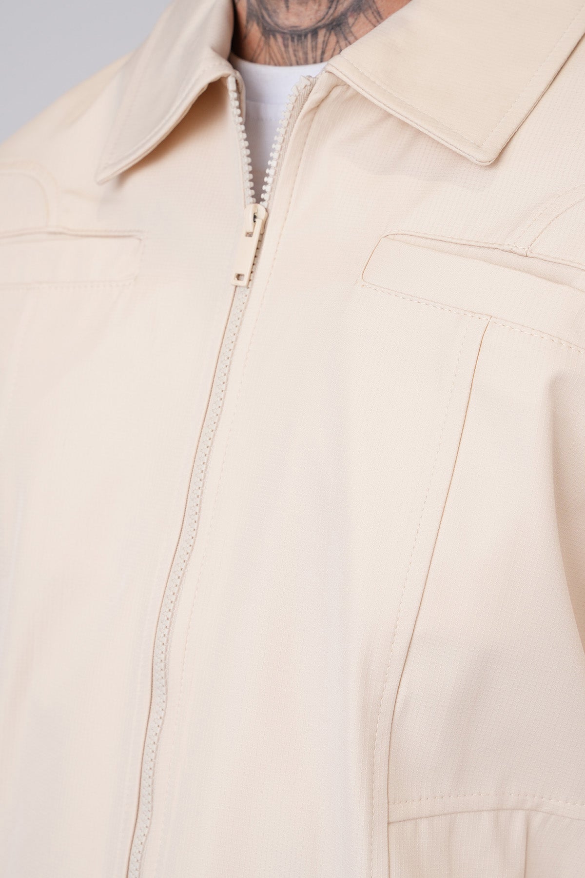 - Jacket with front and chest pockets