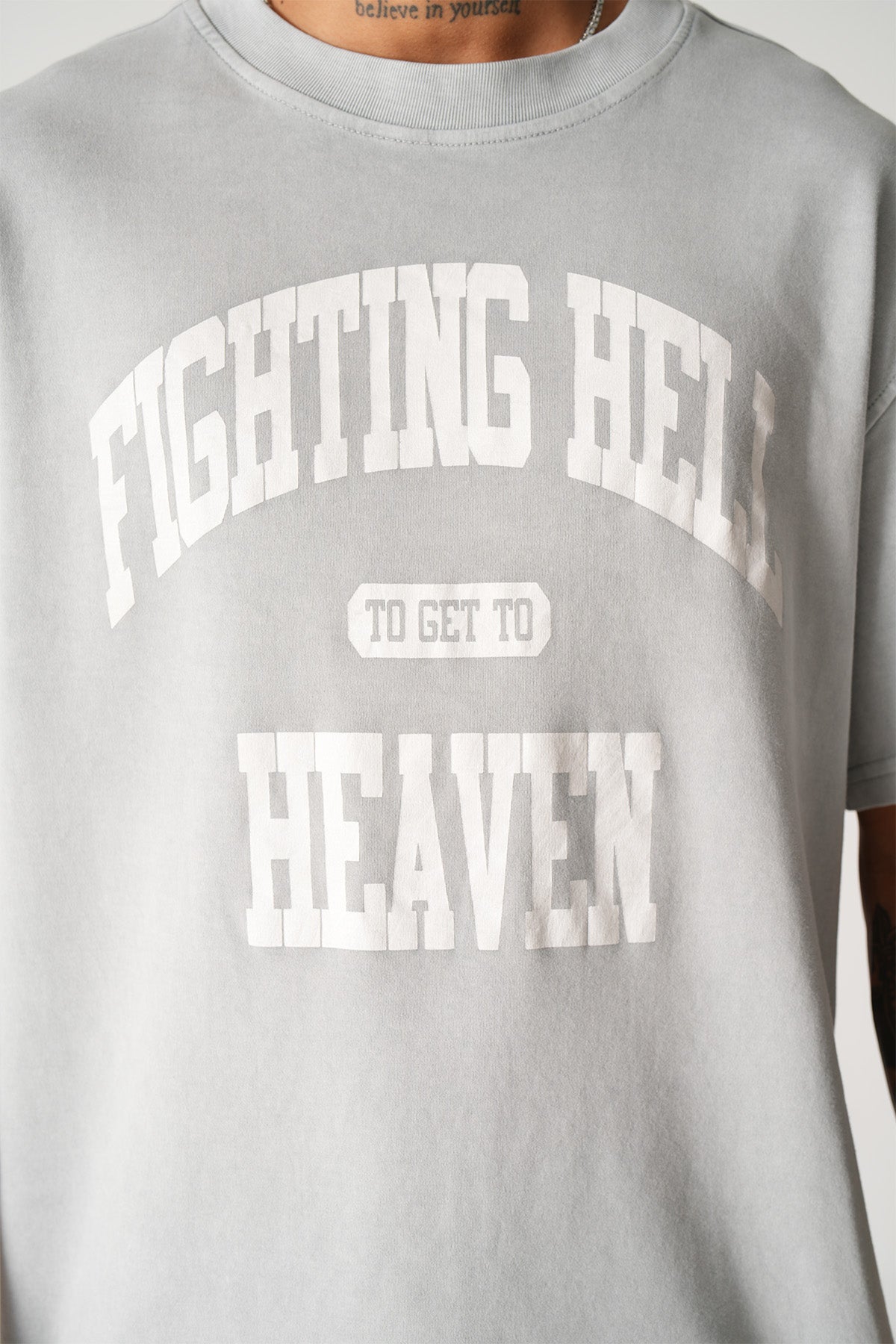 • Washed solid color with visual on the front