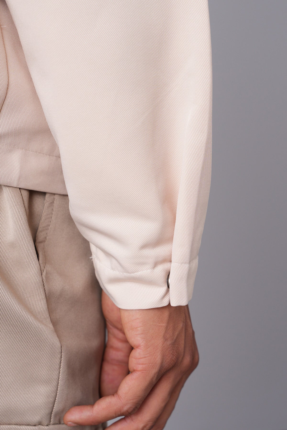 - Button closure at the cuffs