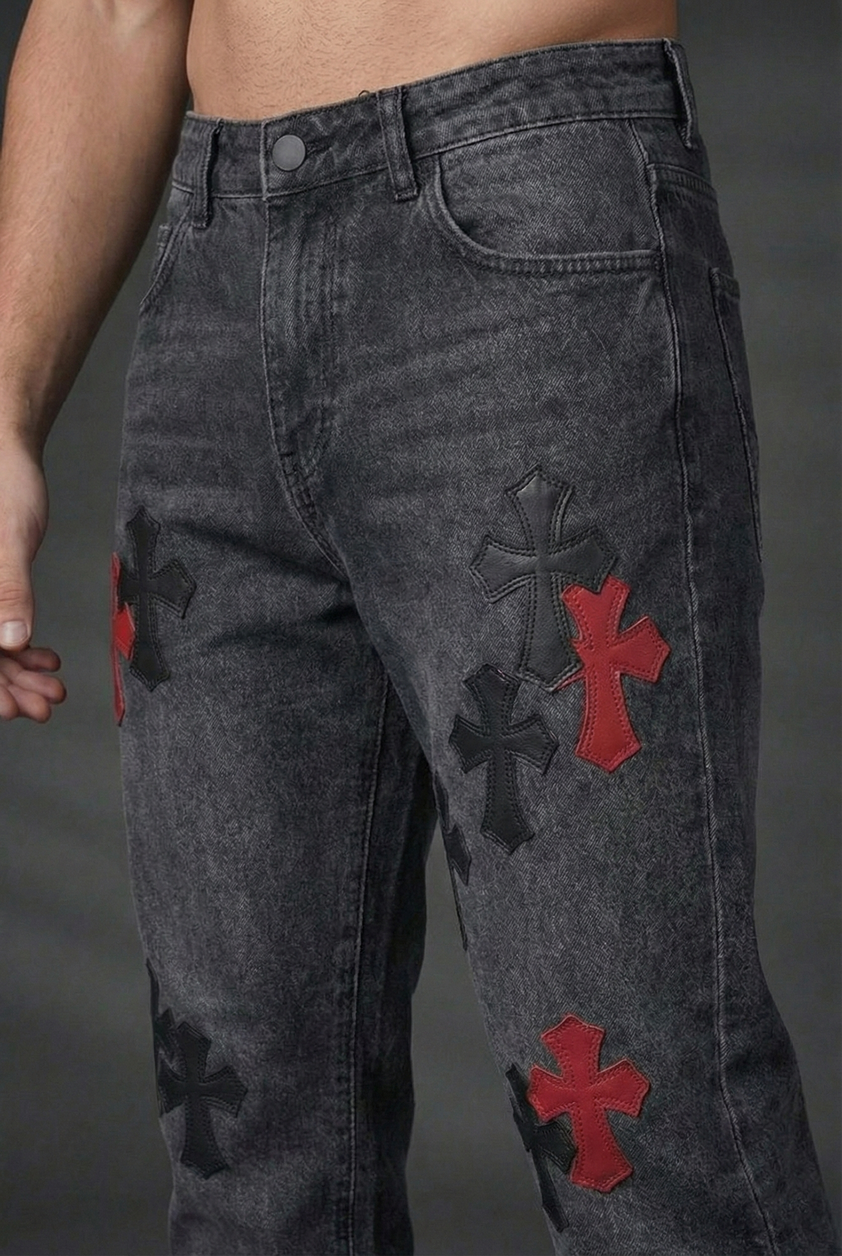 Finition denim avec détails destroy et effets délavés pour un style urbain affirmé.