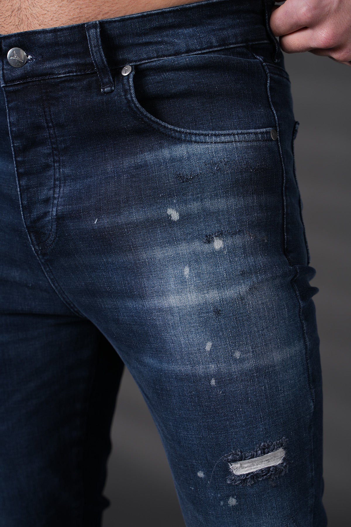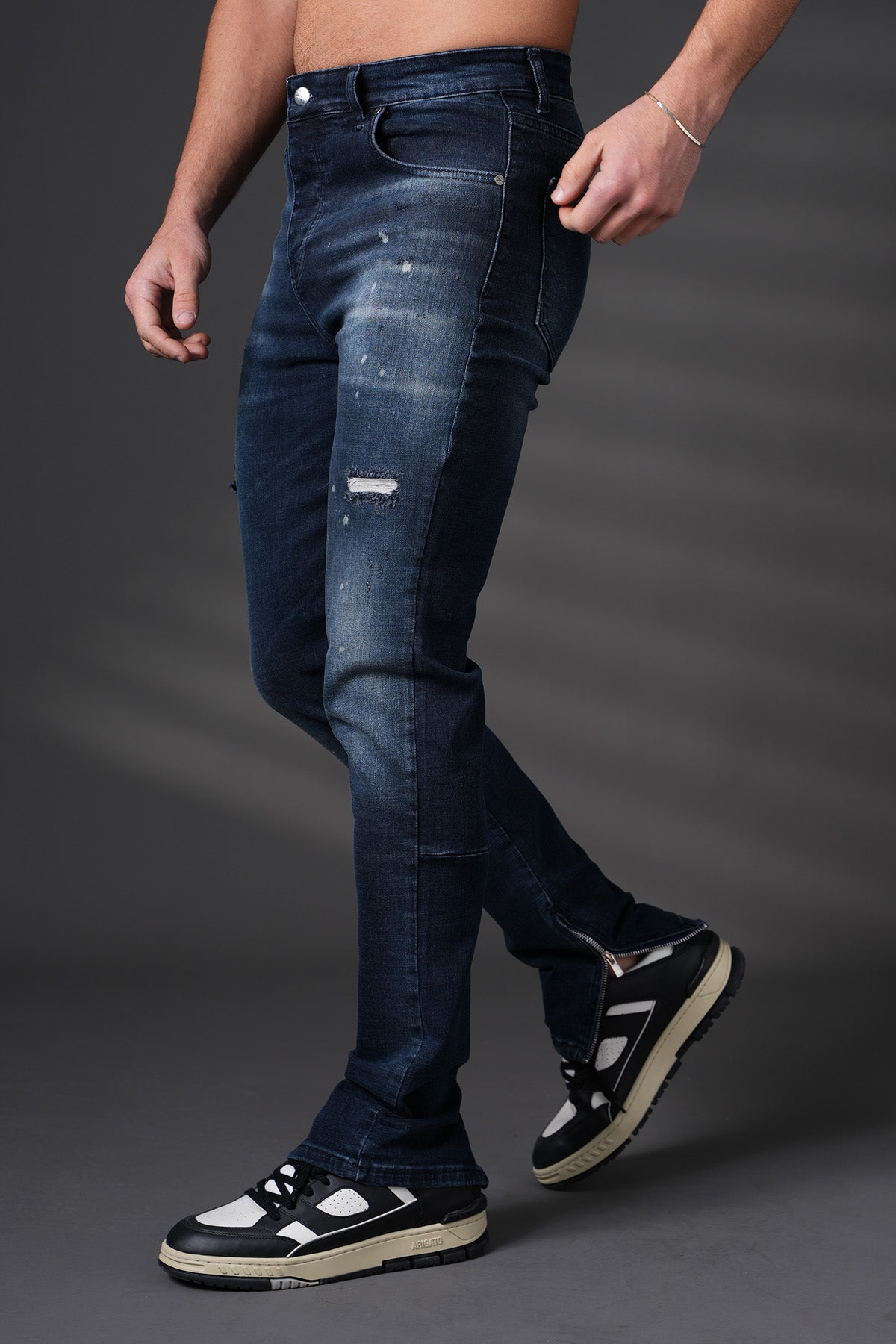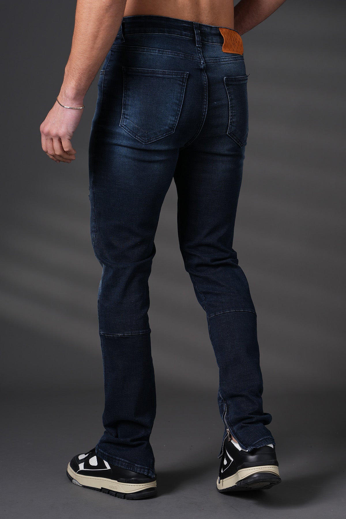 Jean à empiècements — denim premium, silhouette urbaine et finitions soignées.