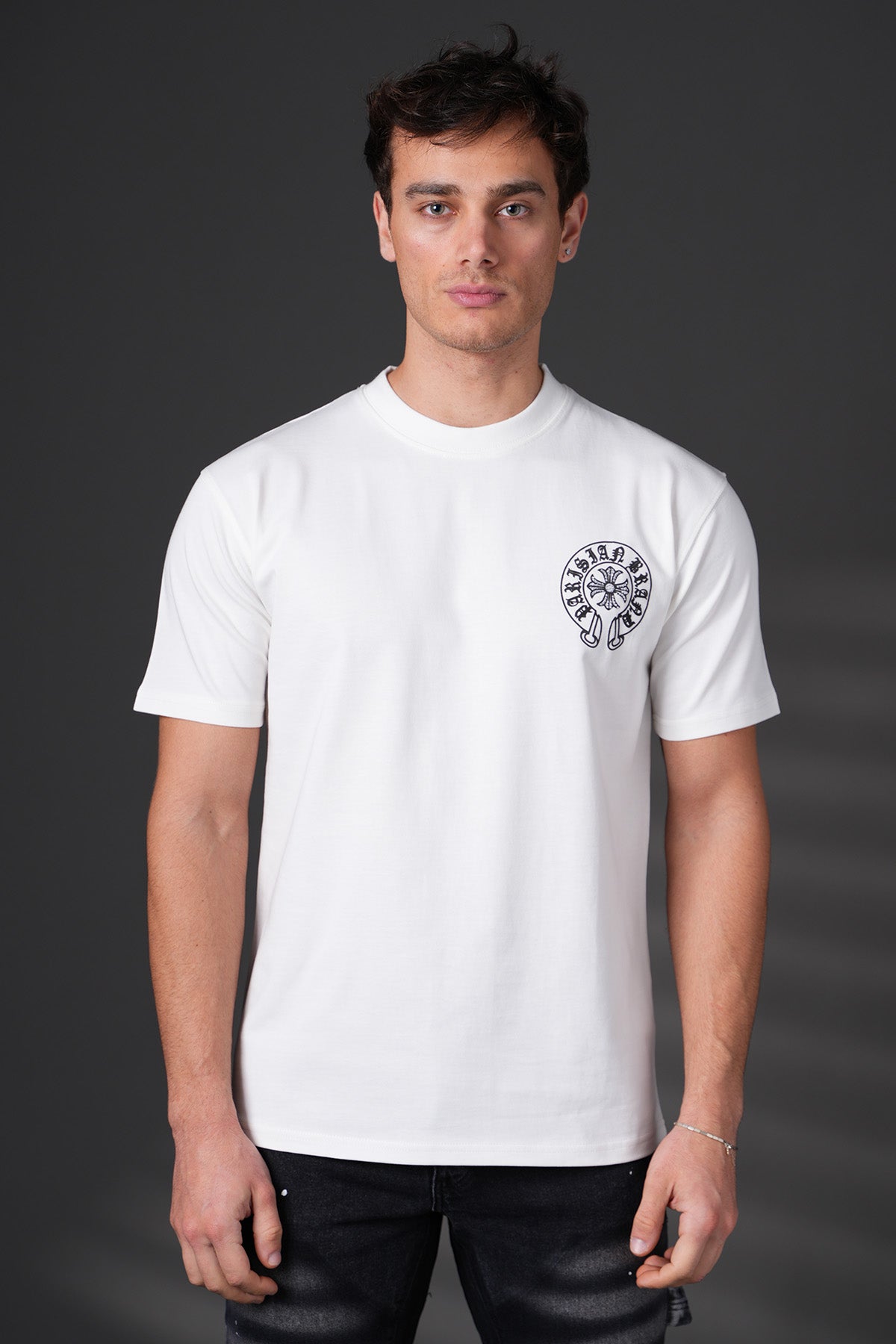 Tee-shirt ample — visuels imprimés à l’avant et à l’arrière, style streetwear premium.