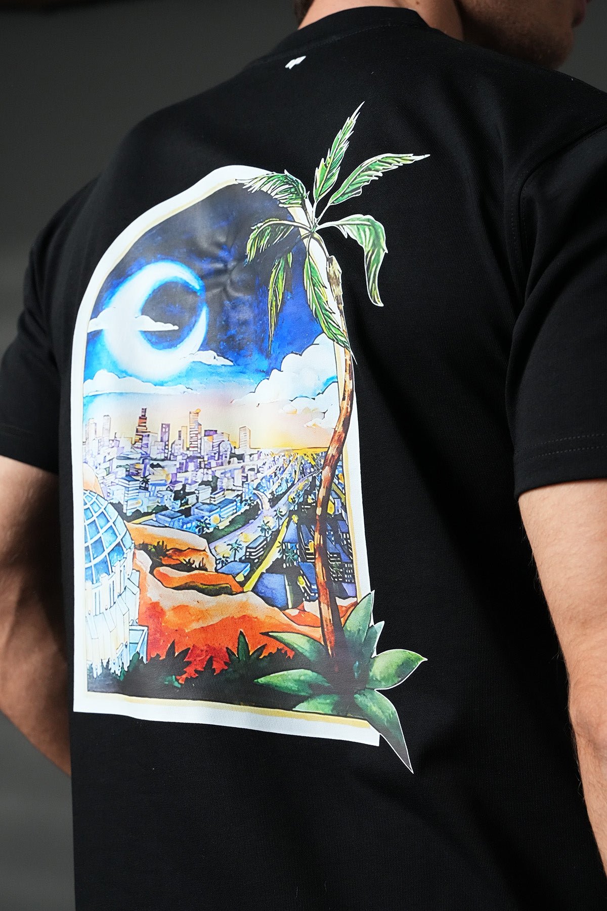 Tee-shirt ample — visuels imprimés à l’avant et à l’arrière, style streetwear premium.